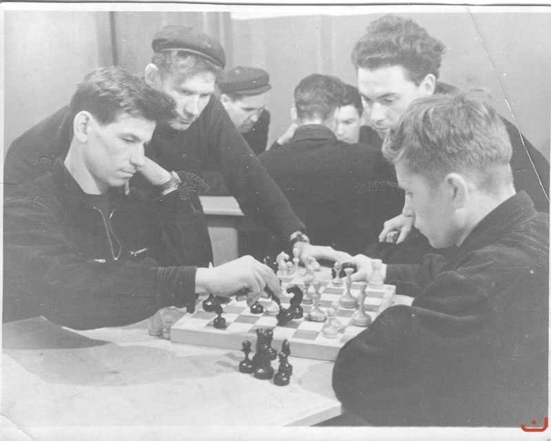 1963 г первенство цеха №8 по шахматам Набоков слева Великопольский справа второй