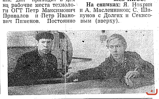 Обращение подписали ветераны завода: В.В. Важенин, В.Н. Доровиков, (кавалер ордена Трудового Красного Знамени), А.Н. Пинигин, Ф.С. Полевщиков, кавалер ордена Ленина, лауреат Государственной премии), Г.Н. Пигалев (кавалер ордена Трудового Красного Знамени), Б.М. Тавосин