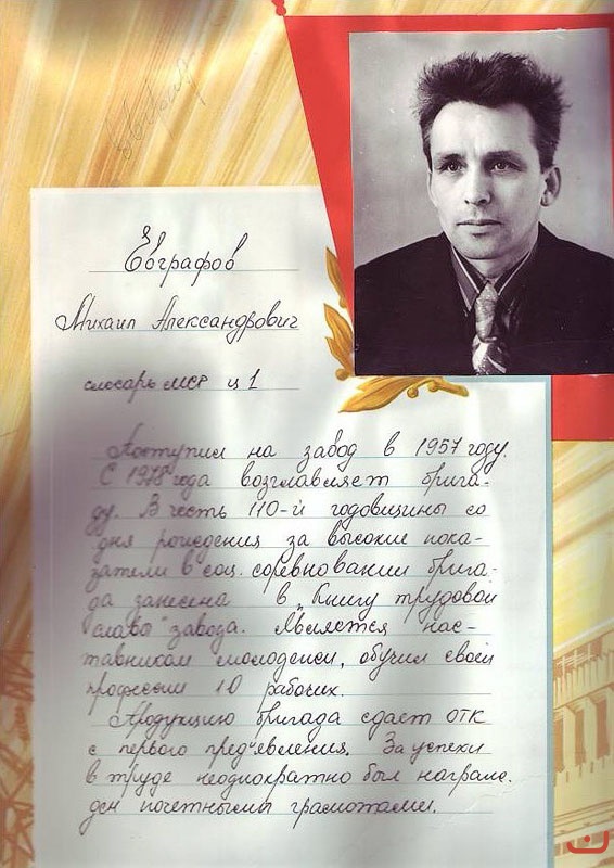 Обращение подписали ветераны завода: В.В. Важенин, В.Н. Доровиков, (кавалер ордена Трудового Красного Знамени), А.Н. Пинигин, Ф.С. Полевщиков, кавалер ордена Ленина, лауреат Государственной премии), Г.Н. Пигалев (кавалер ордена Трудового Красного Знамени), Б.М. Тавосин