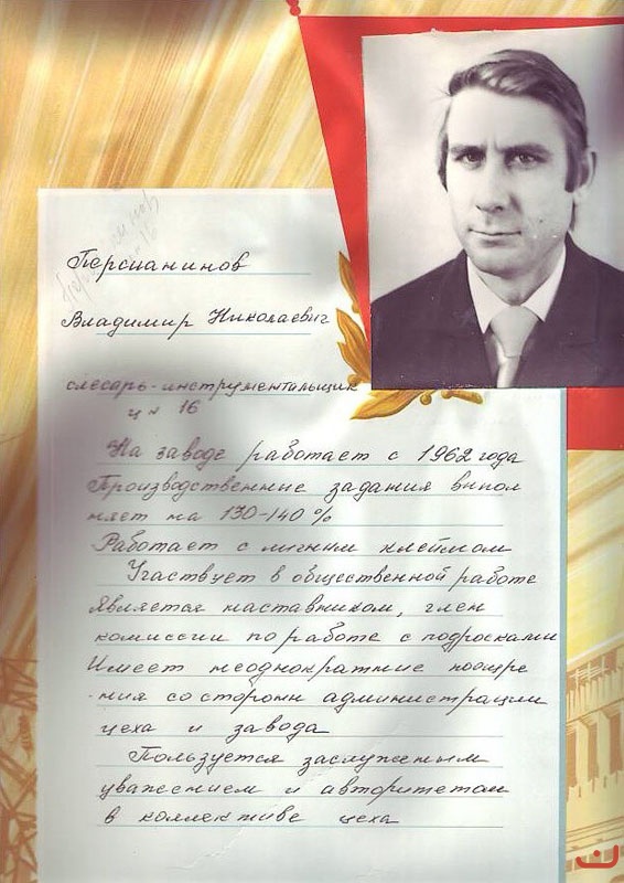 Обращение подписали ветераны завода: В.В. Важенин, В.Н. Доровиков, (кавалер ордена Трудового Красного Знамени), А.Н. Пинигин, Ф.С. Полевщиков, кавалер ордена Ленина, лауреат Государственной премии), Г.Н. Пигалев (кавалер ордена Трудового Красного Знамени), Б.М. Тавосин