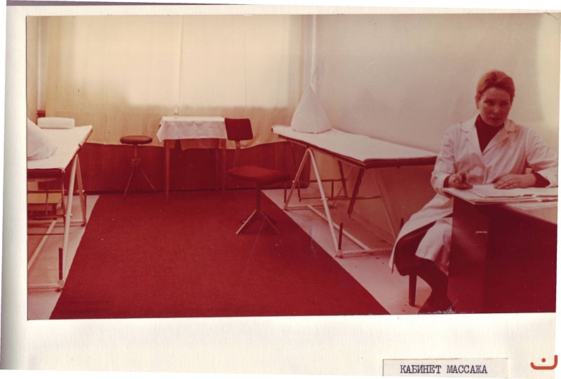 Основные сведения о водофизиолечебнице Холл для отдыха после процедур Басенйн 6х25 м с минеральной водой ВОДОЛЕЧЕБНИЦА 1983 г Бердинских Зоя Ивановна, старшая медицинская сестра  Вестибюль водофизиолечебницы Холл второго этажа Холл второго этажа Оформление холла второго этажа Кабинет массажа Кабинет лечебной физкультуры.За столом – Пятина Людмила  Жемчужная ванна  Бассейн вертикального вытяжения Аппарат магнитотерапии «Полюс» Фотарий Кабинет микроволновой терапии Одна из кабин электрокабинета Бассейн  6х25 м с минеральной водой Медведева Александра Ивановна - заведующая водофизиолечебницы Заборовская Товменко Людмила Петровна, физиомедсестра  МСЧТС82-2 Бородина  ТС 87-25 Зайцева  ТС 87-25 Харитонова  ТС 87-45 250623 14.06.79 Подготовка к дню медицинского работника Стоят  1)Шаболина Полина Степановна 2)Огорелкова Надежда Ивановна 3)Харитонова Раиса Николаевна 4)Зырянова Виктория Александровна 5)Андреева Вера Васильевна 6)Шелудкова юлия Михайловна 7)Павленко Лидия Петровна 8)Малыгина Нина Петровна Сидят 9)Бердинских Зоя Ивановна 10)Миедведева Александра Ивановна 11)Заборовская Вера Васильевна Коллектив водолечебницы провожает на пенсию Зырянову Викторию Александровну (в центре), 1987 г.  Нижний ряд справа налево: Южкова Л.И., Товменко Л.П., Малыгина Нина Петровна, Зырянова В.А. (юбилярша), Медведева А.И., Бердинских З.И. Верхний ряд справа налево: Фатеева Тамара Даниловна (санитарка), Харитонова Р.Н., Ринат (массажист), Бородкина Т.П., Андреева В.В., Зайцева Г.И., Черных Ольга Викторовна (методист ЛФК), Якименко Людмила Александровна (заведующая поликлиникой МСЧ ТСЗ), Самойлова Римма Александровна (главная медсестра МСЧ ТСЗ), Николева Зинаида Афанасьевна (заведующая здравпунктом ТСЗ), Болтнева Мария (прачка), Линёва С. Ф. День медицинского работника 1980 год. Лучшие сотрудники водолечебницы. Слева направо: Шешукова Надежда Николаевна, Товменко Людмила Петровна, Харитонова Раиса Николаевна, Бердинских Зоя Ивановна