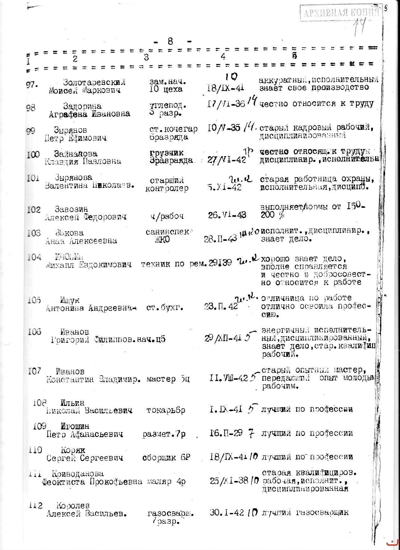 Главная Главная » Общезаводские документы » За доблестный труд » Список награжденных стр. 8