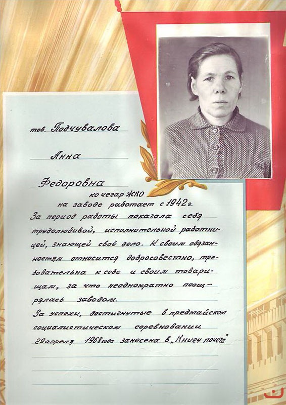 Обращение подписали ветераны завода: В.В. Важенин, В.Н. Доровиков, (кавалер ордена Трудового Красного Знамени), А.Н. Пинигин, Ф.С. Полевщиков, кавалер ордена Ленина, лауреат Государственной премии), Г.Н. Пигалев (кавалер ордена Трудового Красного Знамени), Б.М. Тавосин