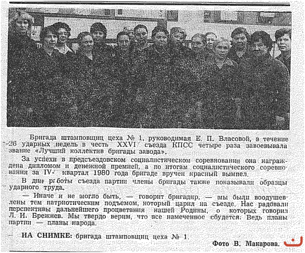 Обращение подписали ветераны завода: В.В. Важенин, В.Н. Доровиков, (кавалер ордена Трудового Красного Знамени), А.Н. Пинигин, Ф.С. Полевщиков, кавалер ордена Ленина, лауреат Государственной премии), Г.Н. Пигалев (кавалер ордена Трудового Красного Знамени), Б.М. Тавосин