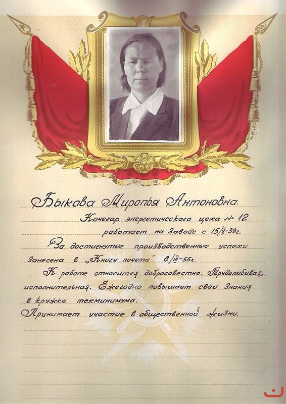 Вы здесь: Главная Рабочие завода по цехам Цех 12 Быкова Мария Антоновна ц 12 Mail0600