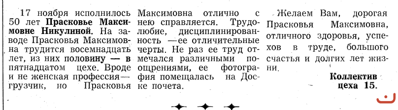 Обращение подписали ветераны завода: В.В. Важенин, В.Н. Доровиков, (кавалер ордена Трудового Красного Знамени), А.Н. Пинигин, Ф.С. Полевщиков, кавалер ордена Ленина, лауреат Государственной премии), Г.Н. Пигалев (кавалер ордена Трудового Красного Знамени), Б.М. Тавосин