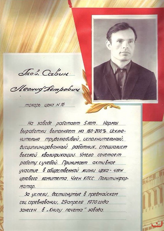 Вы здесь: Главная Рабочие завода по цехам Цех 16 Савин Леонид Петрович ц 16 Mail0886
