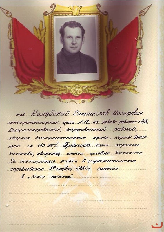 Вы здесь: Главная Рабочие завода по цехам Цех 3 Колябский Станислав Иосифович ц 18 Mail0794