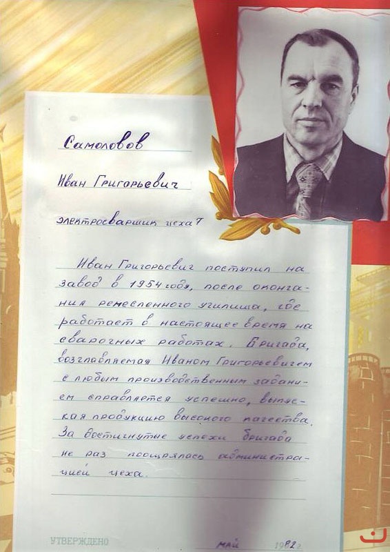 Обращение подписали ветераны завода: В.В. Важенин, В.Н. Доровиков, (кавалер ордена Трудового Красного Знамени), А.Н. Пинигин, Ф.С. Полевщиков, кавалер ордена Ленина, лауреат Государственной премии), Г.Н. Пигалев (кавалер ордена Трудового Красного Знамени), Б.М. Тавосин