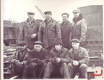 Главная » Рабочие завода по цехам » Цех 7 » Судосборщики крайние справа стоит-Винов Анат сидит Косенков ЯИ сидит слева Захароа АФ