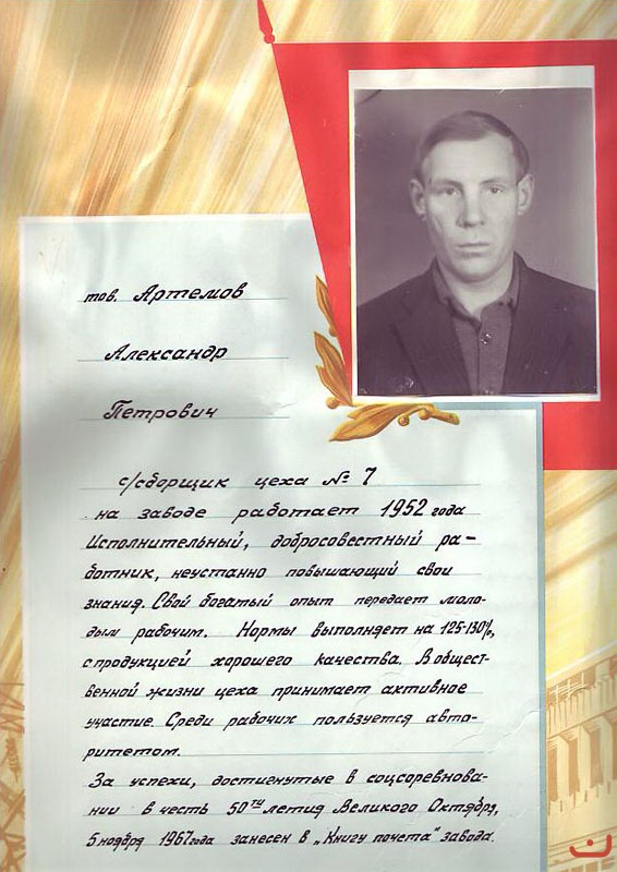 Обращение подписали ветераны завода: В.В. Важенин, В.Н. Доровиков, (кавалер ордена Трудового Красного Знамени), А.Н. Пинигин, Ф.С. Полевщиков, кавалер ордена Ленина, лауреат Государственной премии), Г.Н. Пигалев (кавалер ордена Трудового Красного Знамени), Б.М. Тавосин