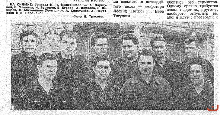 Главная » Рабочие завода по цехам » Цех 8 » Паршуков А Ульянов В Бузырев Н Егоров В Королев А Кикирев Л Михиенков Николай Ильич Свистунов Александр Митрофанович Неустроев Анатолий Игнатьевич Персианов В
