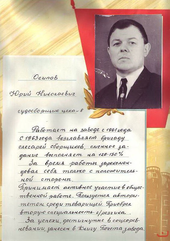 Уважаемые судостроители! Давайте сохраним историю родного завода. Она нужна не только нам, но и нашим детям и внукам. Нам есть чем гордиться. Расскажите о себе, своих товарищах по работе, поделитесь дорогими для Вас документами (все документы будут копироваться в присутствии владельцев). Давайте вернем из небытия имена и фамилии наших несправедливо забытых ветеранов войны и труда.