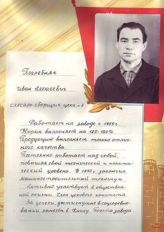 Обращение подписали ветераны завода: В.В. Важенин, В.Н. Доровиков, (кавалер ордена Трудового Красного Знамени), А.Н. Пинигин, Ф.С. Полевщиков, кавалер ордена Ленина, лауреат Государственной премии), Г.Н. Пигалев (кавалер ордена Трудового Красного Знамени), Б.М. Тавосин