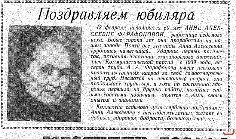 Обращение подписали ветераны завода: В.В. Важенин, В.Н. Доровиков, (кавалер ордена Трудового Красного Знамени), А.Н. Пинигин, Ф.С. Полевщиков, кавалер ордена Ленина, лауреат Государственной премии), Г.Н. Пигалев (кавалер ордена Трудового Красного Знамени), Б.М. Тавосин