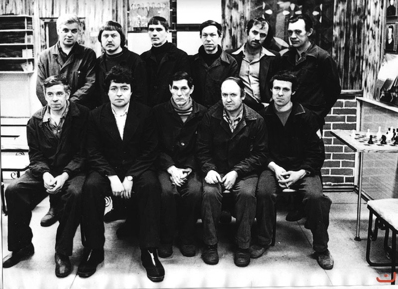 Бригада Скареднова В.П. Первый ряд 1) Ипатьев Александр Тимофеевич 2) Кадочников Владимир Андреевич 3) Скареднов Виктор Павлович 4) Костоваров 5) Каннинен Второй ряд 1) Стойлов Валентин Григорьевич 2) Кокшаров А 3) ??? 4) Мальцев Георгий 5) ?? 6) Яковлев Владимир Александрович