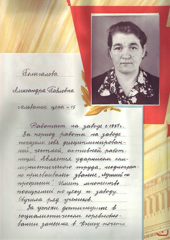Обращение подписали ветераны завода: В.В. Важенин, В.Н. Доровиков, (кавалер ордена Трудового Красного Знамени), А.Н. Пинигин, Ф.С. Полевщиков, кавалер ордена Ленина, лауреат Государственной премии), Г.Н. Пигалев (кавалер ордена Трудового Красного Знамени), Б.М. Тавосин