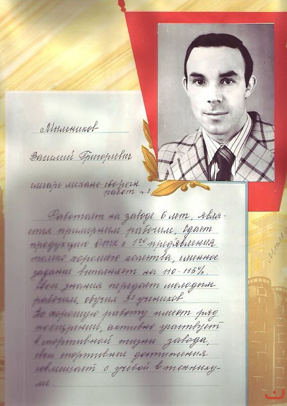 Обращение подписали ветераны завода: В.В. Важенин, В.Н. Доровиков, (кавалер ордена Трудового Красного Знамени), А.Н. Пинигин, Ф.С. Полевщиков, кавалер ордена Ленина, лауреат Государственной премии), Г.Н. Пигалев (кавалер ордена Трудового Красного Знамени), Б.М. Тавосин