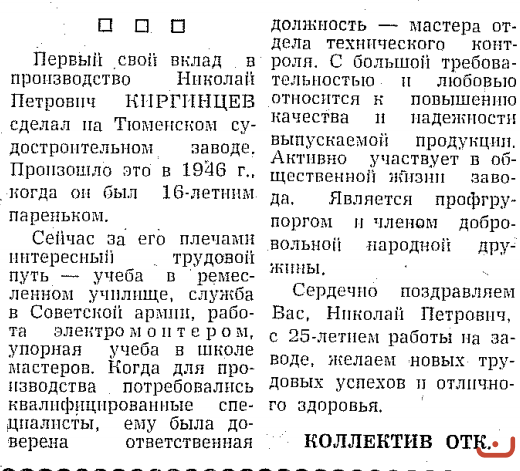Обращение подписали ветераны завода: В.В. Важенин, В.Н. Доровиков, (кавалер ордена Трудового Красного Знамени), А.Н. Пинигин, Ф.С. Полевщиков, кавалер ордена Ленина, лауреат Государственной премии), Г.Н. Пигалев (кавалер ордена Трудового Красного Знамени), Б.М. Тавосин