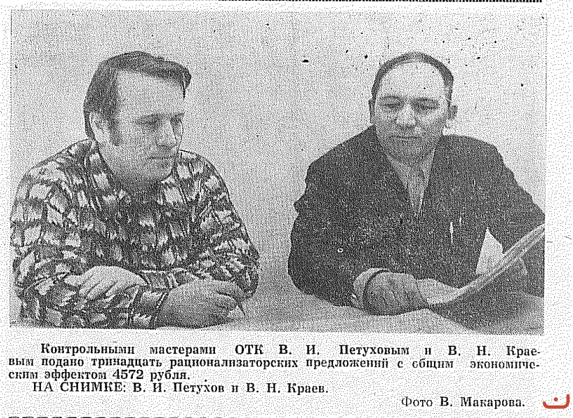 Обращение подписали ветераны завода: В.В. Важенин, В.Н. Доровиков, (кавалер ордена Трудового Красного Знамени), А.Н. Пинигин, Ф.С. Полевщиков, кавалер ордена Ленина, лауреат Государственной премии), Г.Н. Пигалев (кавалер ордена Трудового Красного Знамени), Б.М. Тавосин