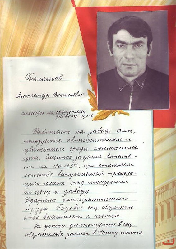 Обращение подписали ветераны завода: В.В. Важенин, В.Н. Доровиков, (кавалер ордена Трудового Красного Знамени), А.Н. Пинигин, Ф.С. Полевщиков, кавалер ордена Ленина, лауреат Государственной премии), Г.Н. Пигалев (кавалер ордена Трудового Красного Знамени), Б.М. Тавосин