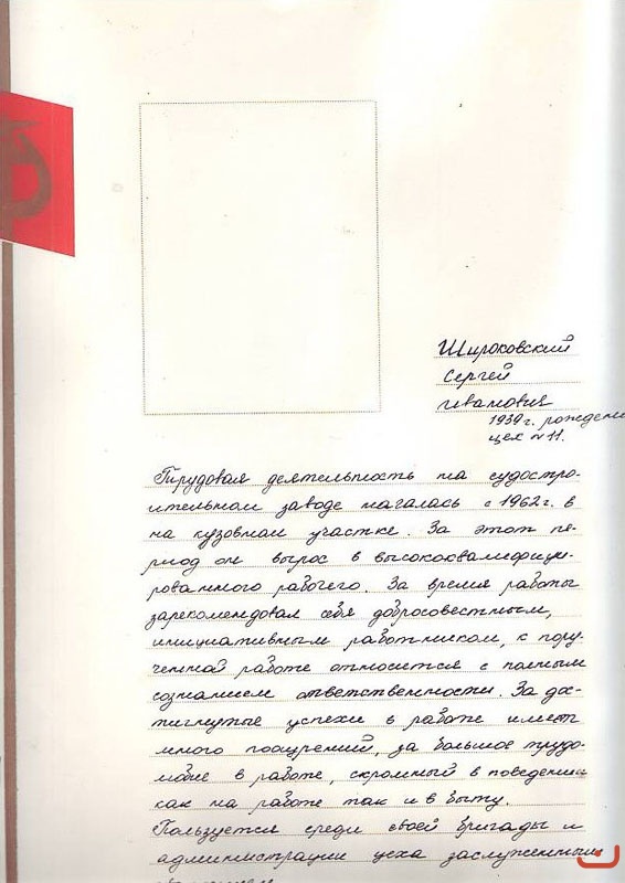 Уважаемые судостроители! Давайте сохраним историю родного завода. Она нужна не только нам, но и нашим детям и внукам. Нам есть чем гордиться. Расскажите о себе, своих товарищах по работе, поделитесь дорогими для Вас документами (все документы будут копироваться в присутствии владельцев). Давайте вернем из небытия имена и фамилии наших несправедливо забытых ветеранов войны и труда.