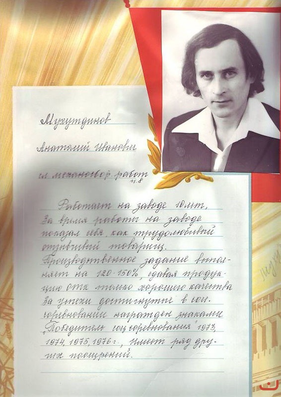 Обращение подписали ветераны завода: В.В. Важенин, В.Н. Доровиков, (кавалер ордена Трудового Красного Знамени), А.Н. Пинигин, Ф.С. Полевщиков, кавалер ордена Ленина, лауреат Государственной премии), Г.Н. Пигалев (кавалер ордена Трудового Красного Знамени), Б.М. Тавосин
