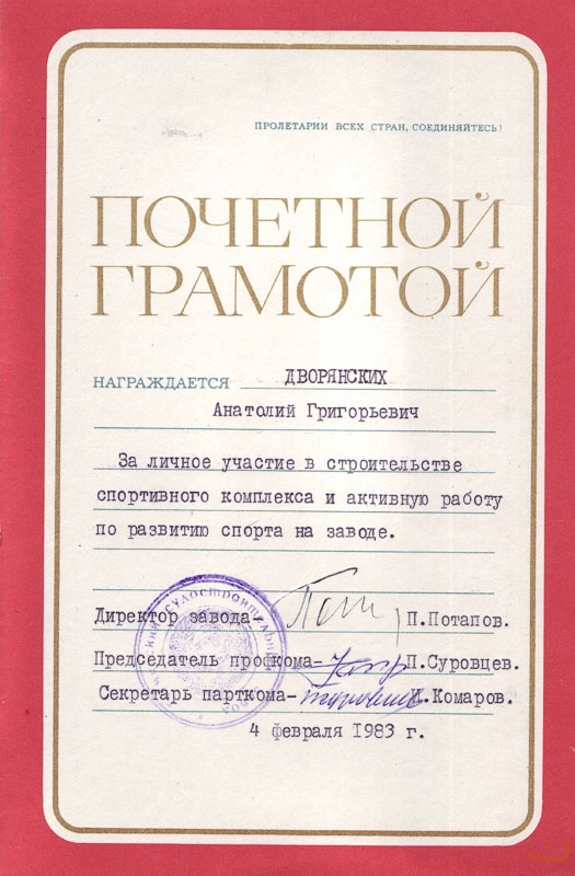 Обращение подписали ветераны завода: В.В. Важенин, В.Н. Доровиков, (кавалер ордена Трудового Красного Знамени), А.Н. Пинигин, Ф.С. Полевщиков, кавалер ордена Ленина, лауреат Государственной премии), Г.Н. Пигалев (кавалер ордена Трудового Красного Знамени), Б.М. Тавосин