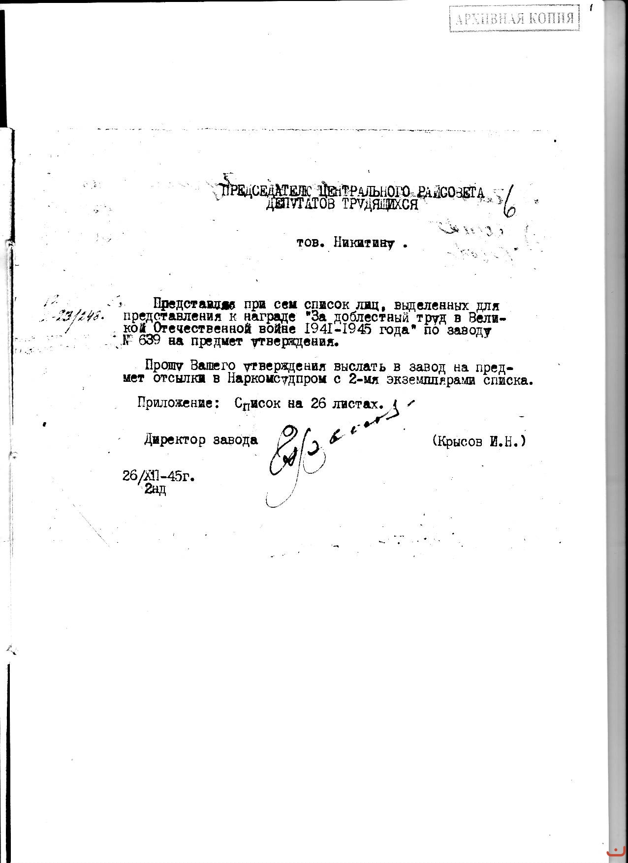 Обращение подписали ветераны завода: В.В. Важенин, В.Н. Доровиков, (кавалер ордена Трудового Красного Знамени), А.Н. Пинигин, Ф.С. Полевщиков, кавалер ордена Ленина, лауреат Государственной премии), Г.Н. Пигалев (кавалер ордена Трудового Красного Знамени), Б.М. Тавосин